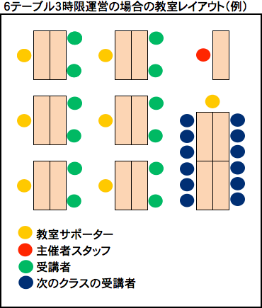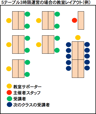 a 主催者スタッフ 人(a≧1) b 教室サポーター 人(b≧d) c 受講者数 30人 d 学習テーブル 5テーブル 2.教室運営用物品【弊社斡旋物品】※印は斡旋物品以外ですので、金額は大まかな目安です